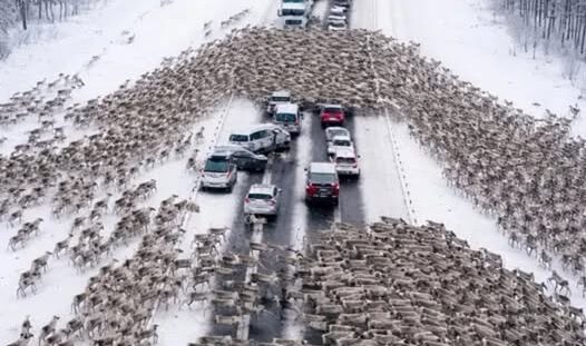 A Holiday Highway Surprise: Reindeer Bring Traffic to a Standstill
