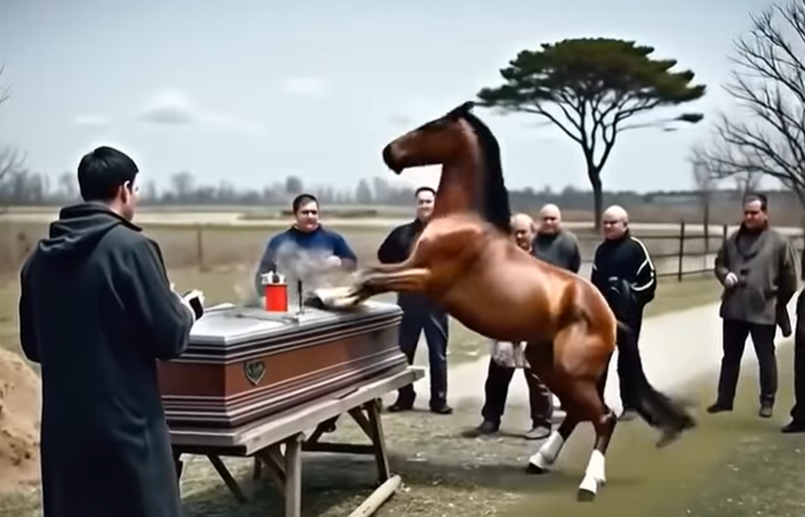 On the day of the funeral, the atmosphere was heavy with grief. Every protocol had been followed, every legal step completed. The town had gathered, and the silence of the procession pressed down like a fog. Then, that silence shattered. Astoria broke free, her hooves pounding the ground with urgent purpose. She ignored startled mourners and charged straight for the wooden casket.