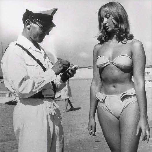 At first glance, it looked like an ordinary photo — a young woman on a sunny beach, smiling in her swimsuit. But look closer, and you’ll see why this image became one of the most controversial in modern history. One seemingly harmless piece of clothing changed everything — the bikini.