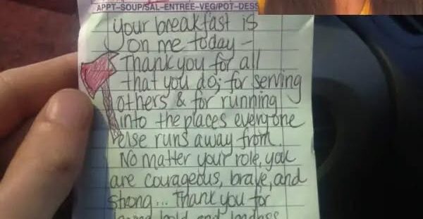 Firefighters change girls life after she pays their bill See more! Read full story in comment
