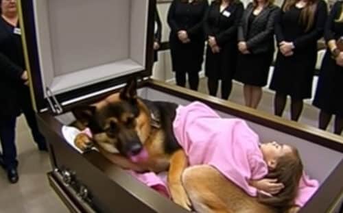A German Shepherd refused to leave a little girl’s coffin—what happened next stunned everyone. The funeral