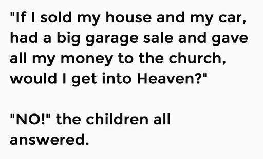 “If I cleaned the church every day, mowed the lawn, and kept everything perfect, would I get into Heaven?”Again: “NO!”…