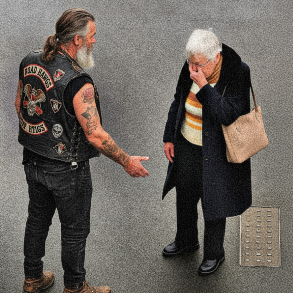 He took off his helmet, revealing a long gray beard, tattoos covering his arms, and a leather vest with patches I couldn’t read. I pressed myself into the seat, trying to shrink. My finger hovered over the call button as he stepped closer.
