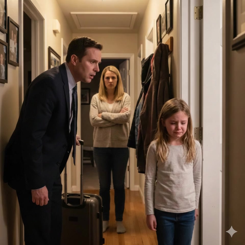 Kevin dropped his suitcase, the thud echoing through the hollow house. He moved toward the bedroom door with careful, measured steps. Daisy huddled behind the doorframe, knuckles white, eyes anchored to the carpet.