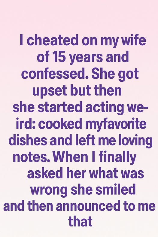 I thought I knew what marriage was — fifteen years of steady rhythms, predictable mornings, and quiet loyalty that felt like safety. But one night shattered all of that. It began with a confession I’d buried for too long — the kind of truth that corrodes you from the inside out until silence becomes unbearable. I told my wife everything. The mistake, the betrayal, the thing that would likely end us. I expected the shouting, the slammed doors, the emotional detonation that would finally mirror the chaos I’d been living with inside.