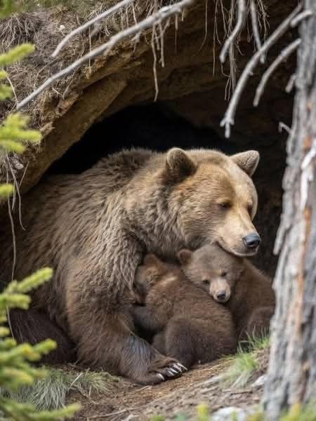 Yet the mother hadn’t fled. She had carried her baby to the nearest shelter — the car — and refused to leave. She wasn’t scared. She wasn’t aggressive. She was mourning. Every slow breath, every gentle nudge of her cub spoke of a love stronger than fire.