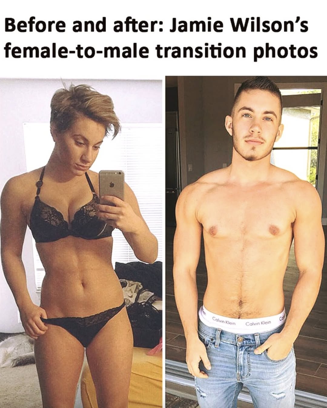 About a year into his transition, Jamie shared a set of before-and-after photos on Facebook, including some shirtless images that highlighted physical changes from hormone therapy. The post quickly went viral, reaching more than 13 million views and drawing attention from celebrities and media outlets alike.