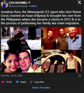 Fast forward to last week, and Ross, a full-time member of ICE’s ERO Special Response Team in Minneapolis, was involved in another high-profile incident: the fatal shooting of 37-year-old mother Renee Good. The shooting sparked immediate debate, with DHS Secretary Kristi Noem defending Ross’s actions and President Donald Trump calling the officer “lucky to be alive” while criticizing Good.