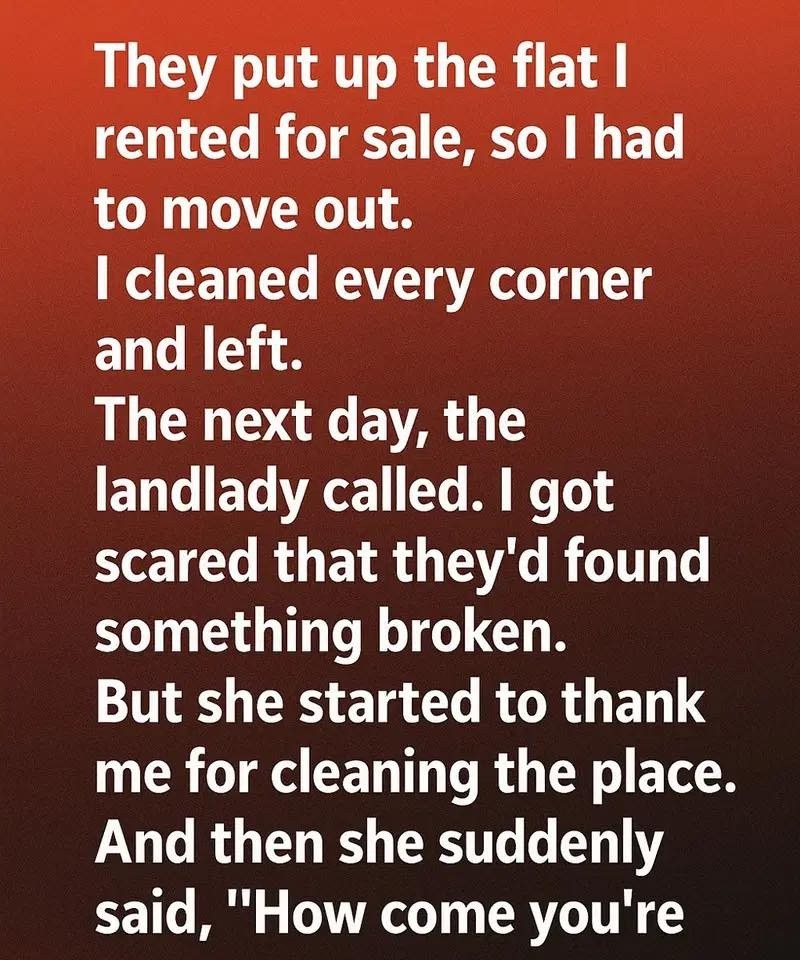 The next morning, my phone rang. It was the landlady. My stomach tightened for a second, wondering if I’d missed something. But instead of complaints, her voice was full of surprise and gratitude. She thanked me for how clean the place was before asking, almost shyly, “Why were you so respectful? Most people leave the place in terrible shape.”