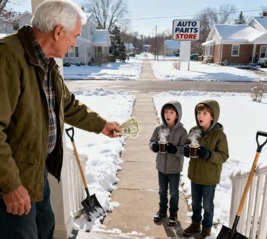 The morning air hit with a sharp bite, the kind that steals your breath and makes the world feel alive and unforgiving. I stood at the window, coffee in hand, watching the driveway Marcus and Leo had cleared through yesterday’s snowstorm. For two kids with a broken shovel, they’d done an incredible job. Their determination lingered in my mind… until something small caught my eye.