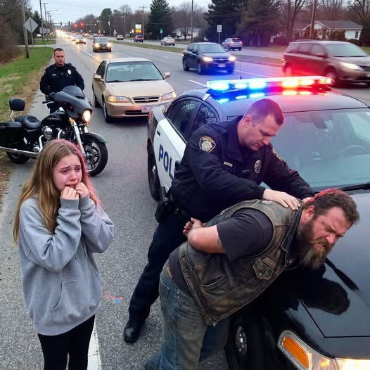 My stomach dropped so fast it felt like free fall. I pictured her alone in that car, hands gripping the wheel, knuckles white. I pictured the biker the way any parent would—bearded, broad-shouldered, leather vest covered in patches, engine roaring like a warning. A threat.