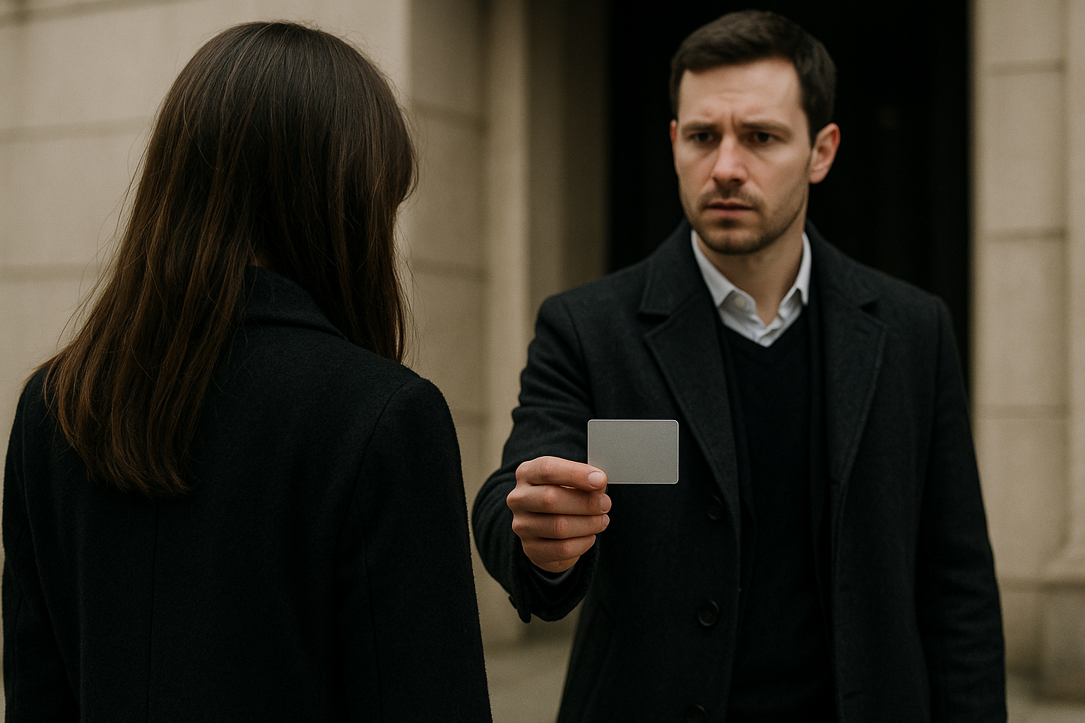 She took the card quickly, not because she wanted it, but because she wanted the moment to end. She shoved it into her wallet, deep behind receipts and old coupons, and made herself a promise: