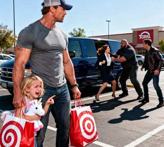 A sudden cry cut through the noise—sharp, frightened, unmistakably desperate. Marcus froze, scanning instinctively. About half a football field away, near a parked van, something was wrong. A young woman was struggling, surrounded by three men moving with alarming urgency.