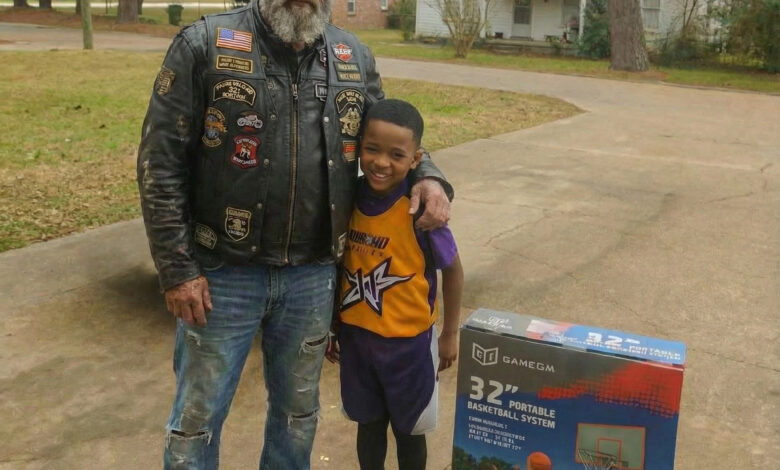 I wasn’t planning to stop. I was halfway through a long ride—the kind you take when you’re trying to outrun something heavy in your own head—when I caught sight of a little boy on the sidewalk. He was shooting a beat-up basketball into a rusted trash can, tears streaking down his face like his whole world had fallen apart.
