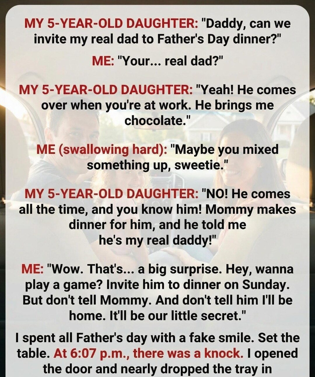 From the moment Lily said it, my world tilted. We were crawling home through traffic after daycare, the radio low, when she piped up from the back seat, “Daddy, can we invite my real dad to dinner on Father’s Day?”