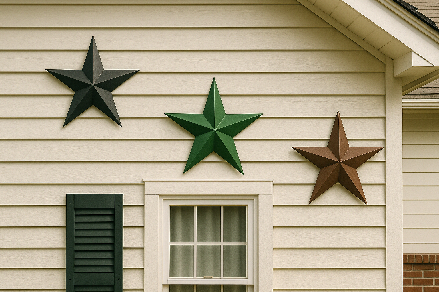 There’s no standardized system that turns barn stars into a coded message. Most people choose a color because it matches their home exterior design, complements shutters or trim, or fits their preferred farmhouse decor aesthetic.